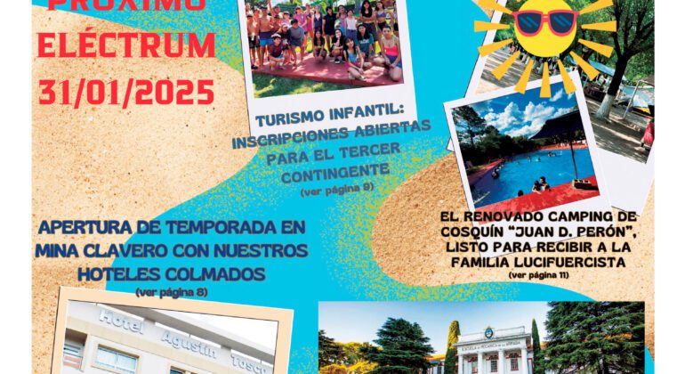 Verano 2024/2025 APERTURA DE TEMPORADA EN MINA CLAVERO El viernes 3 de enero se realizó la apertura de Temporada de verano en Mina Clavero, con una velada en nuestra Colonia General San Martín, que ha recuperado su esplendor y junto al Hotel Agustín Tosco albergan a ocupación plena las vacaciones