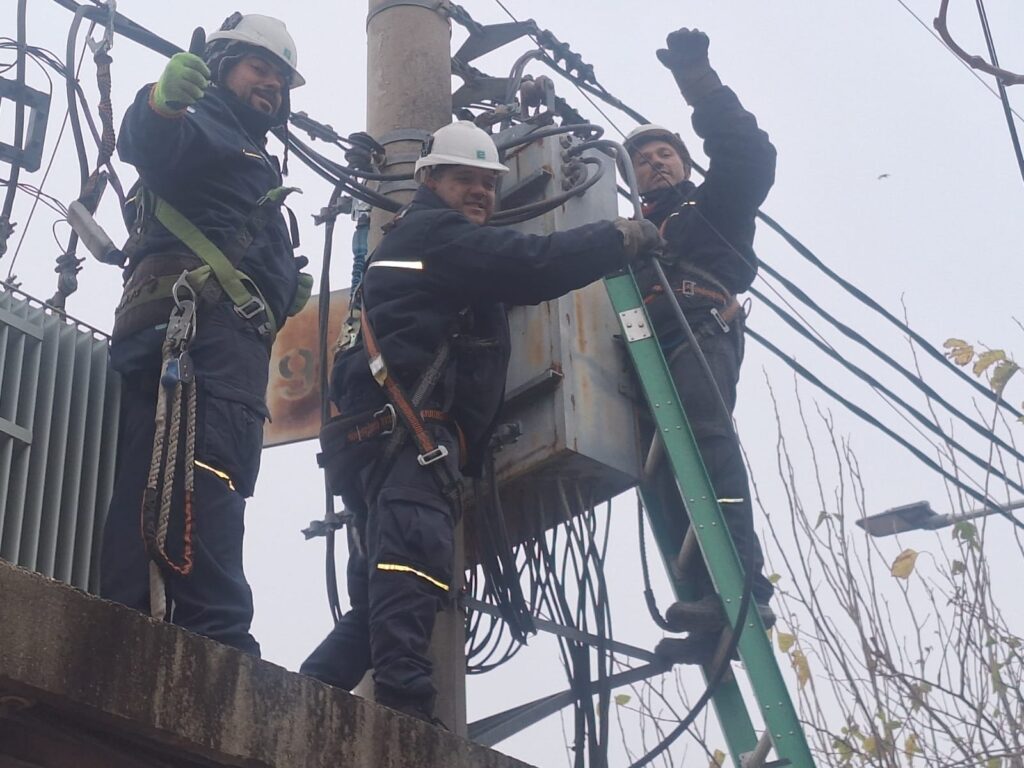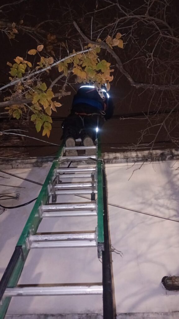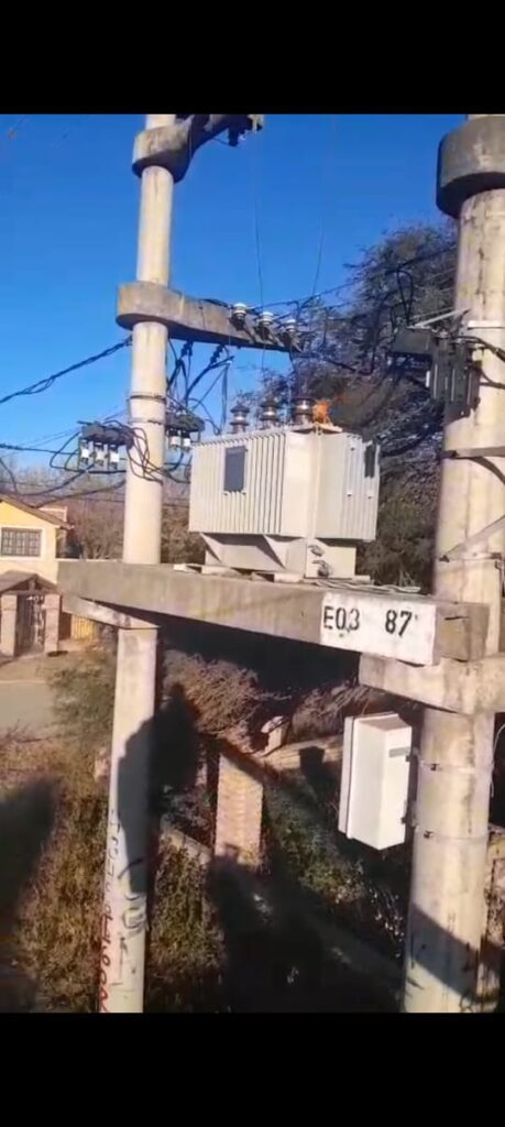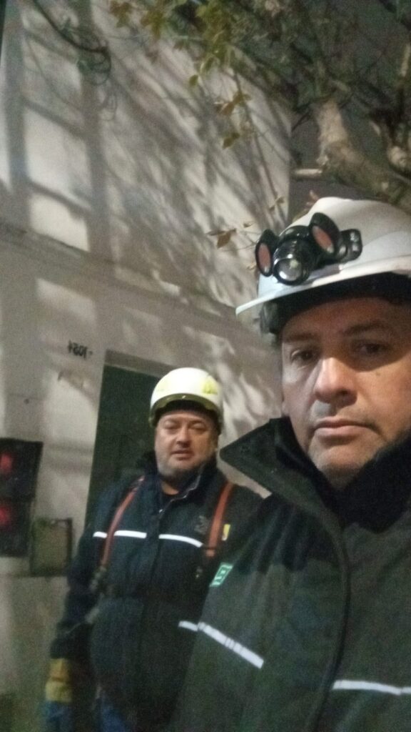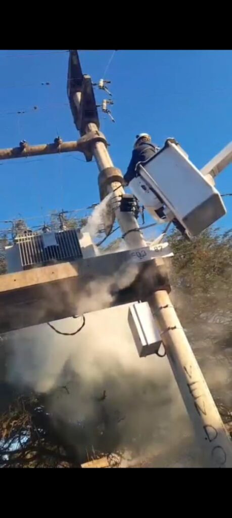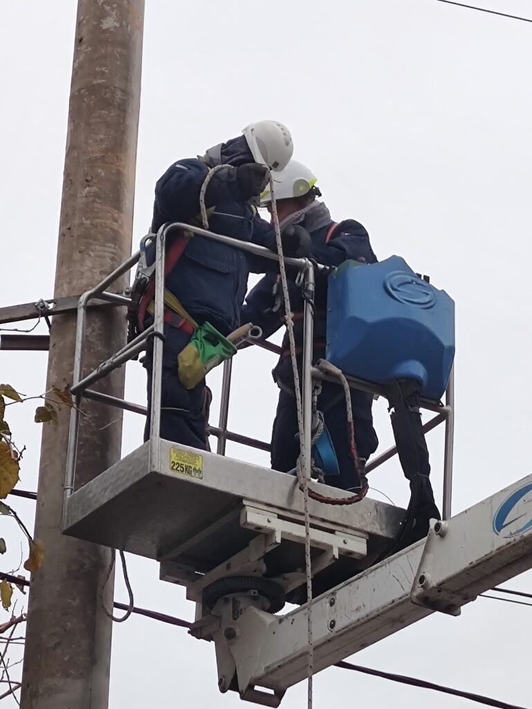 Los compañeros de Líneas Aéreas Sur trabajaron en varios sectores, entre ellos, reparando la bornera secundaria de un transformador en barrio San Pablo.