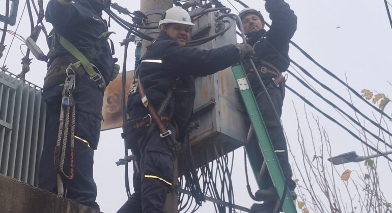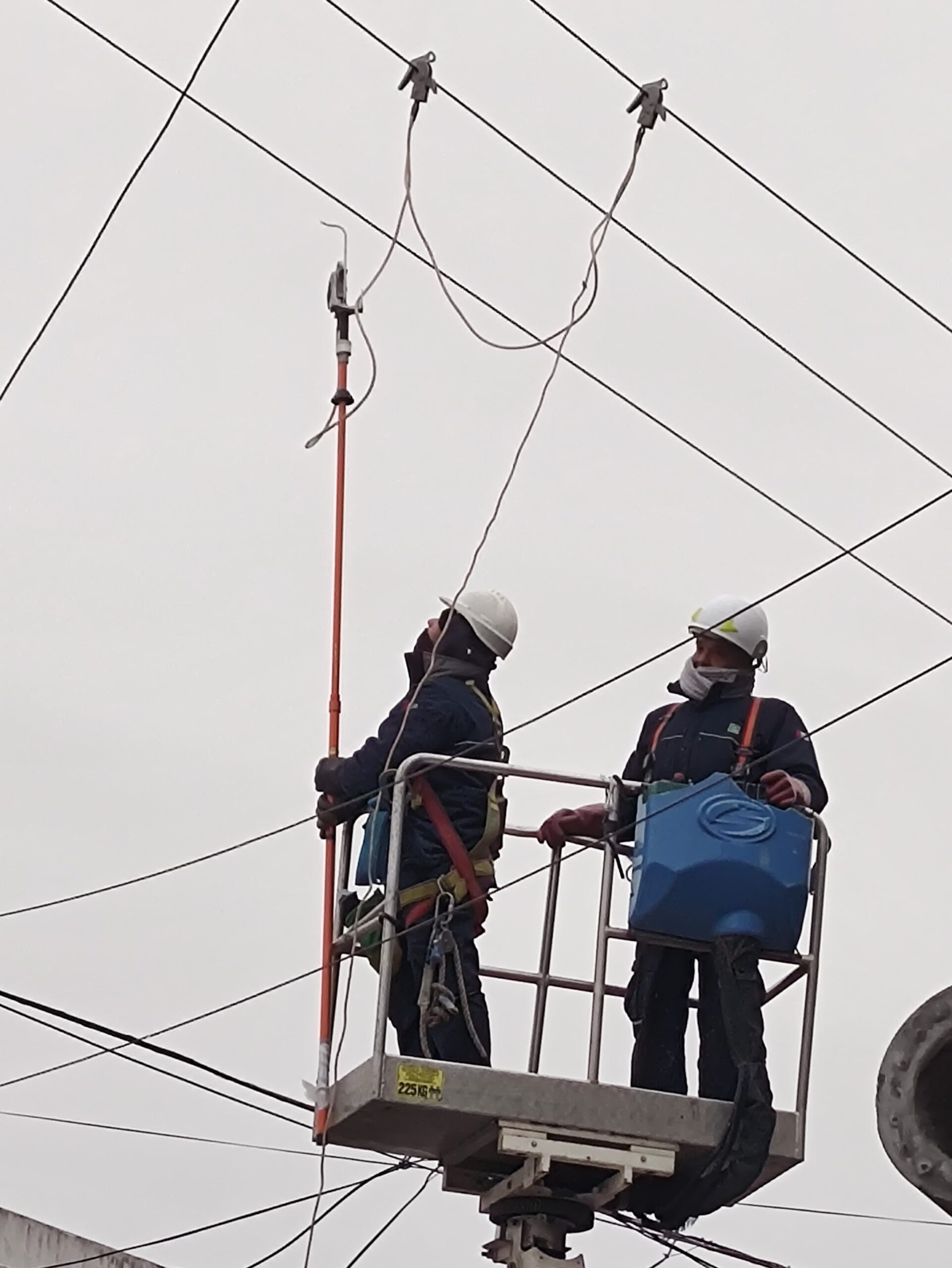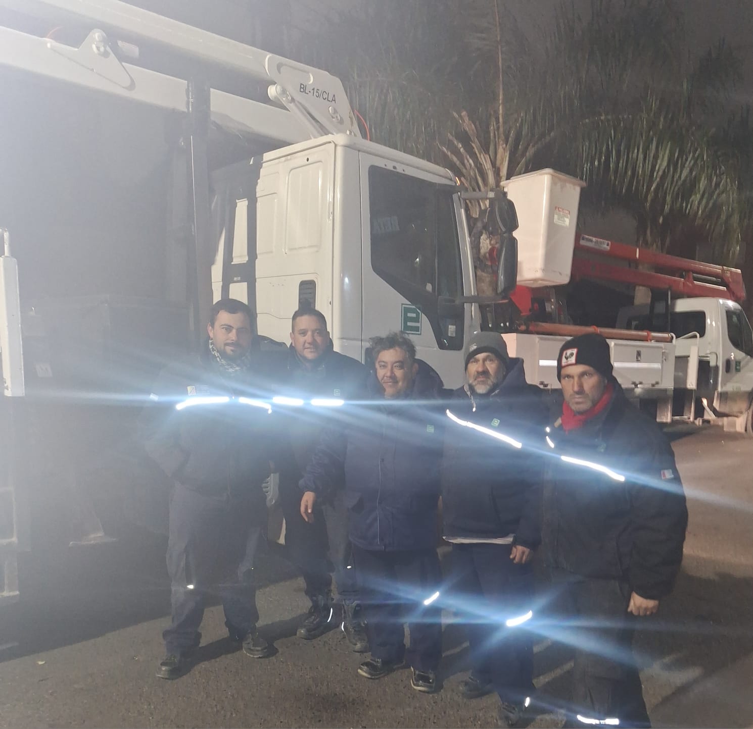 Los compañeros de Líneas Aéreas Sur trabajaron en varios sectores, entre ellos, reparando la bornera secundaria de un transformador en barrio San Pablo.