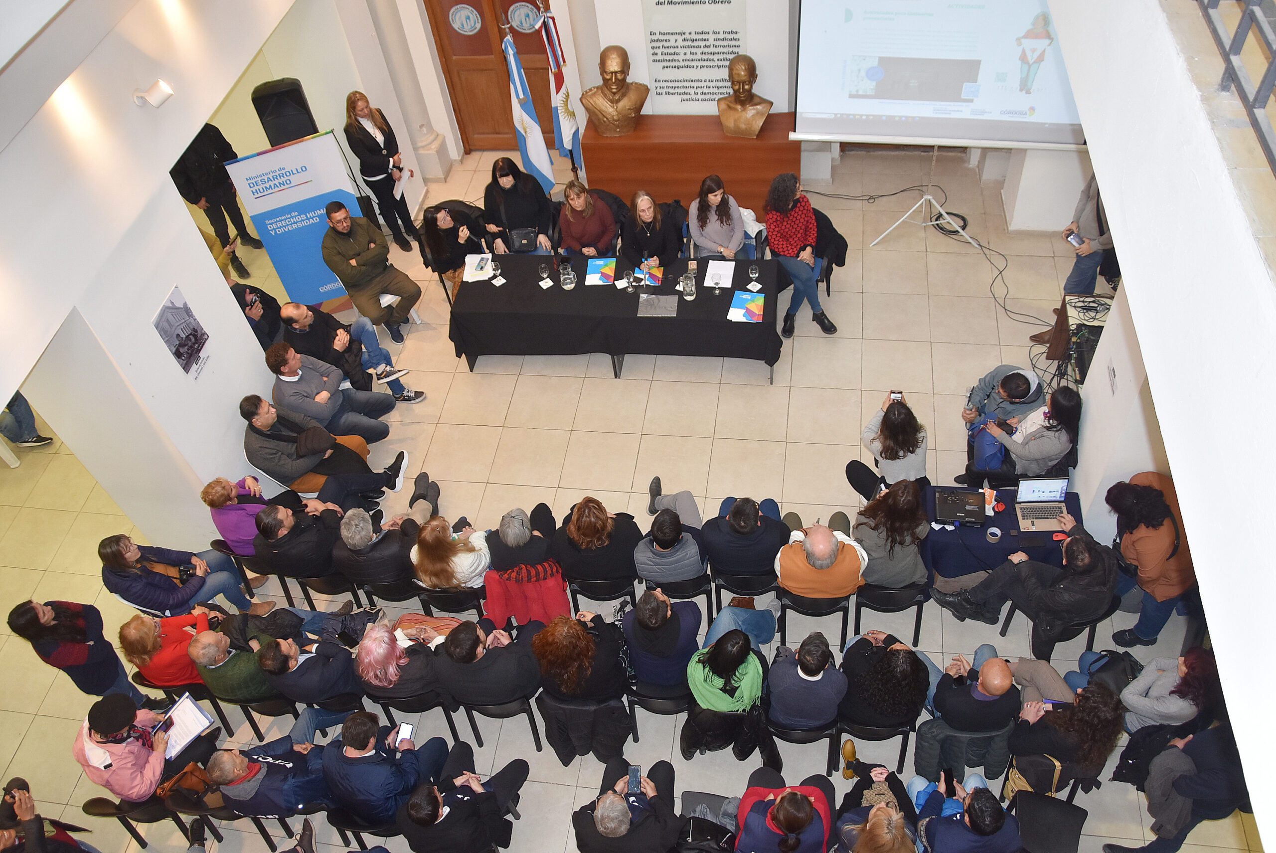 En el encuentro del viernes pasado, la capacitación fue presentada por la ministra de Desarrollo Humano Liliana Montero y la secretaria de Derechos Humanos y Diversidad Tamara Pez, junto a Natalia Refice (CGT Regional), Ilda Bustos (CGT Córdoba), Mariana Mandakovic (CTA-A) y Leticia Medina (CTA-T).