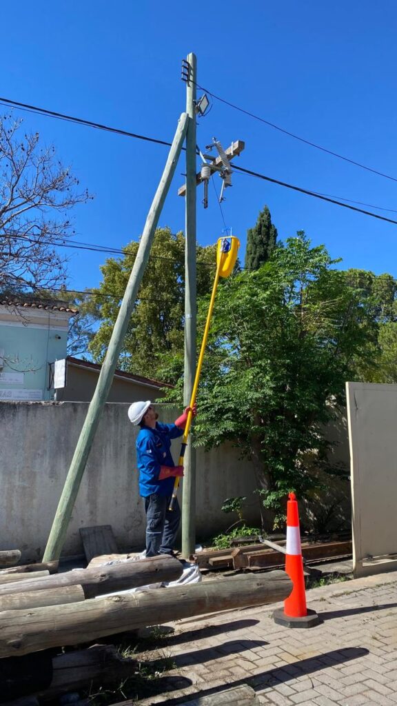 La EPEC implementó los nuevos bloqueadores (“baldes”, que van sobre los seccionadores a cuchilla o XS, donde estará visualmente el corte para la maniobra) en todo el ámbito de la provincia, comenzando la capacitación para su utilización en Zona A y ahora se extendió al interior. En este caso, la misma estuvo a cargo del Ing. Manuel Basel.