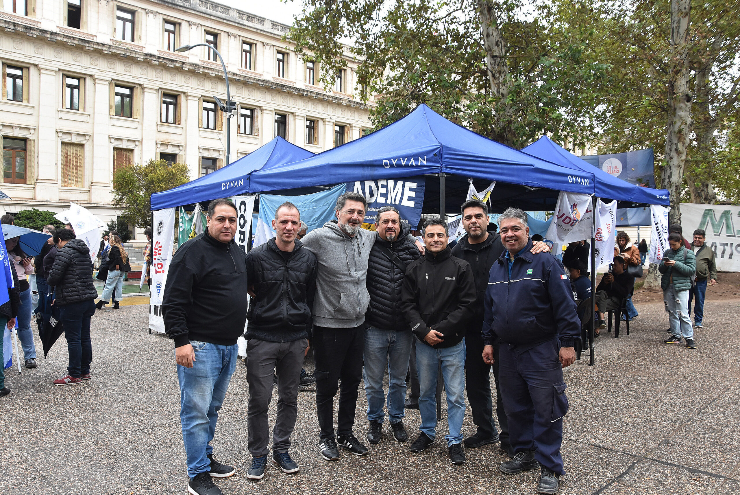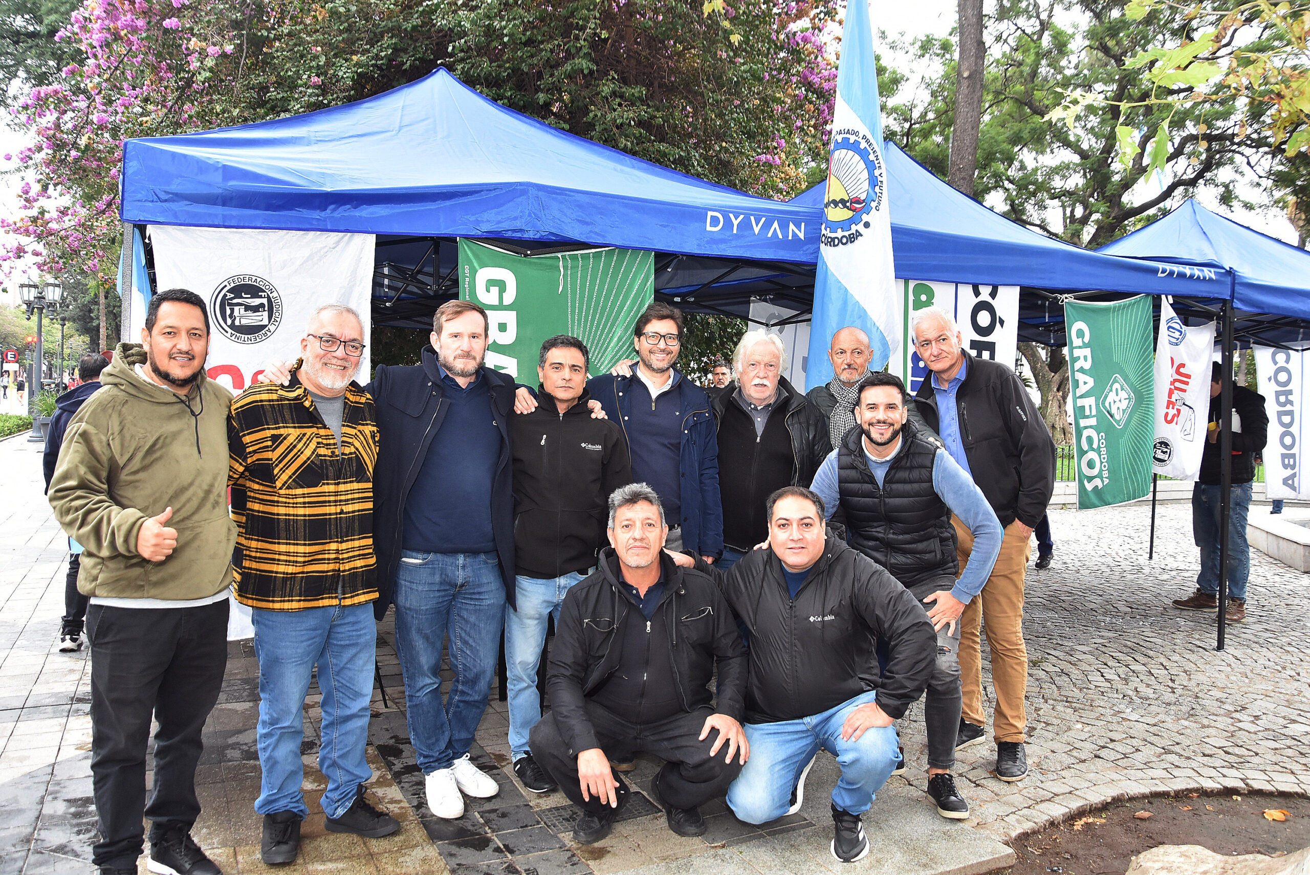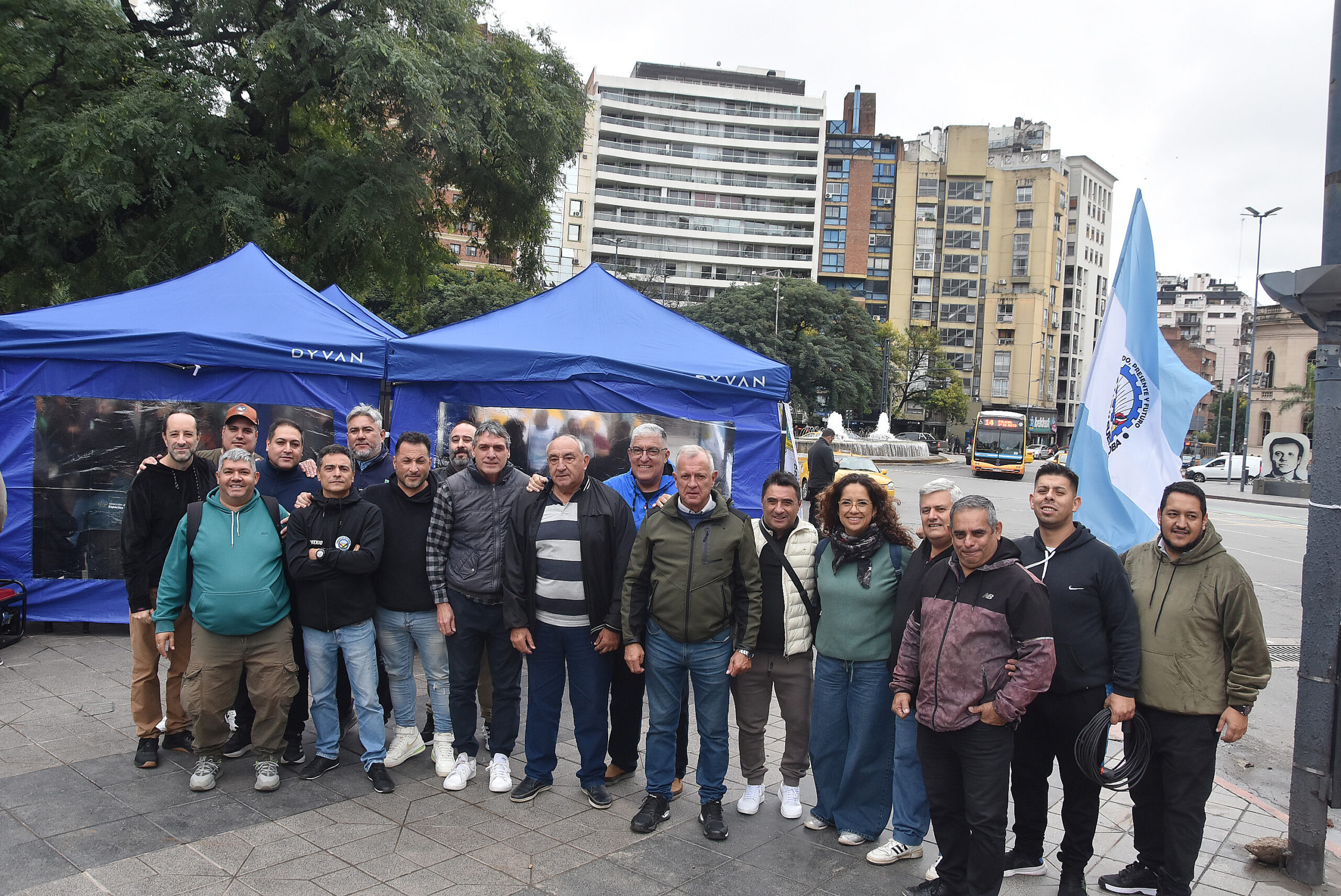 junto a compañeros de los Cuerpos Organizados en la Plaza Vélez Sarsfield