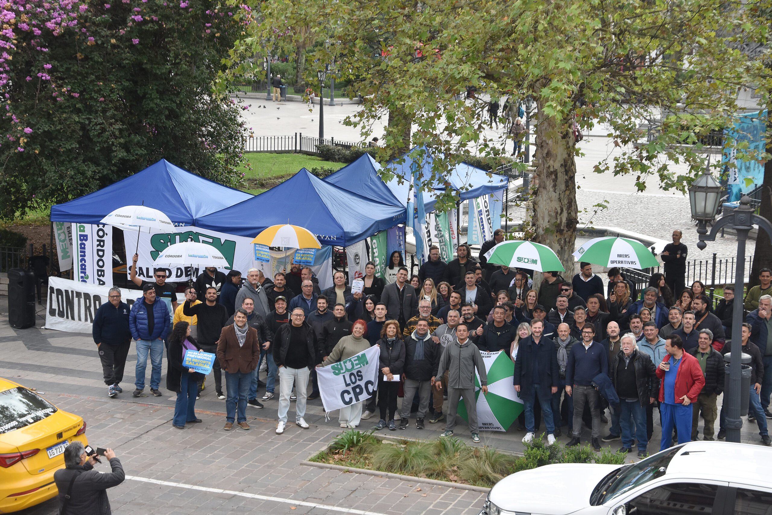 La carpa fue montada el lunes 20 de abril en la Plaza Vélez Sarsfield, con el objetivo de dar visibilidad y difusión a nuestro reclamo. Con participación y militancia de todos los gremios, la primera jornada se desarrolló en total tranquilidad, con volanteada, semaforeada con las consignas en defensa de los haberes y salarios estatales, plenario de Juventudes y batucada.