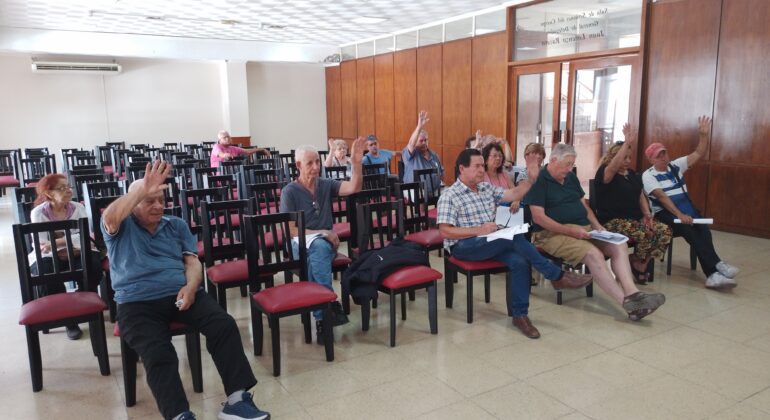 ASAMBLEAS ORDINARIA Y EXTRAORDINARIA RESOLUCIONES Como estaba previsto, el jueves 12 de diciembre se realizaron las asambleas Ordinaria y Extraordinaria. La mesa estuvo presidida por Carlos Oviedo, presidente del Centro; la vicepresidenta Ignacia Rey, la tesorera María del Rosario Rodríguez Chover y la secretaria de Actas Beatriz Echenique, acompañados de