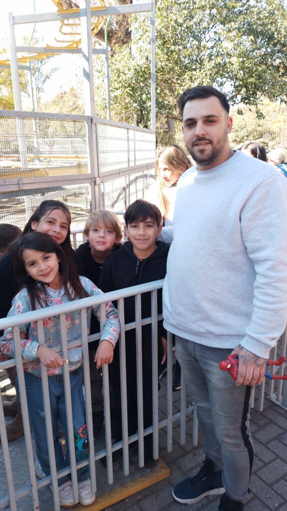 El compañero Franco Ferraro con Catalina, Uma, Ciro y Joaquín