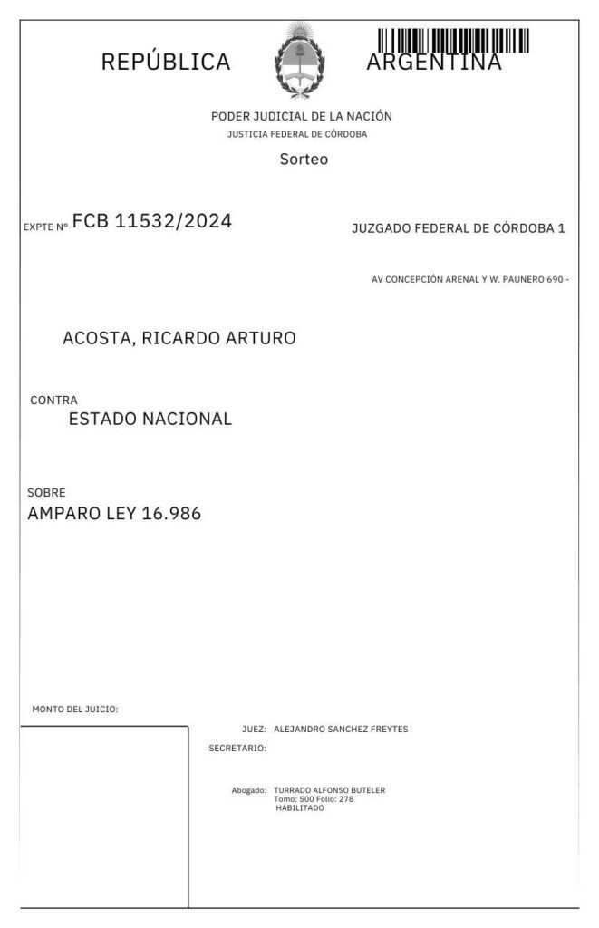 Se hace saber que en los autos caratulados «ACOSTA C/ ESTADO NACIONAL S/ ACCION MERAMENTE DECLARATIVA DE INCONSTITUCIONALIDAD», mediante Sentencia de 19 de agosto de 2025, la justicia federal de Córdoba hizo lugar a la demanda en contra del Estado Nacional- AFIP (hoy ARCA) y declaró la inconstitucionalidad de la/s normas cuestionada/s en la demanda, y ordenar a ésta se abstenga de descontar al actor suma alguna en concepto de impuesto a las ganancias de la prestación previsional.