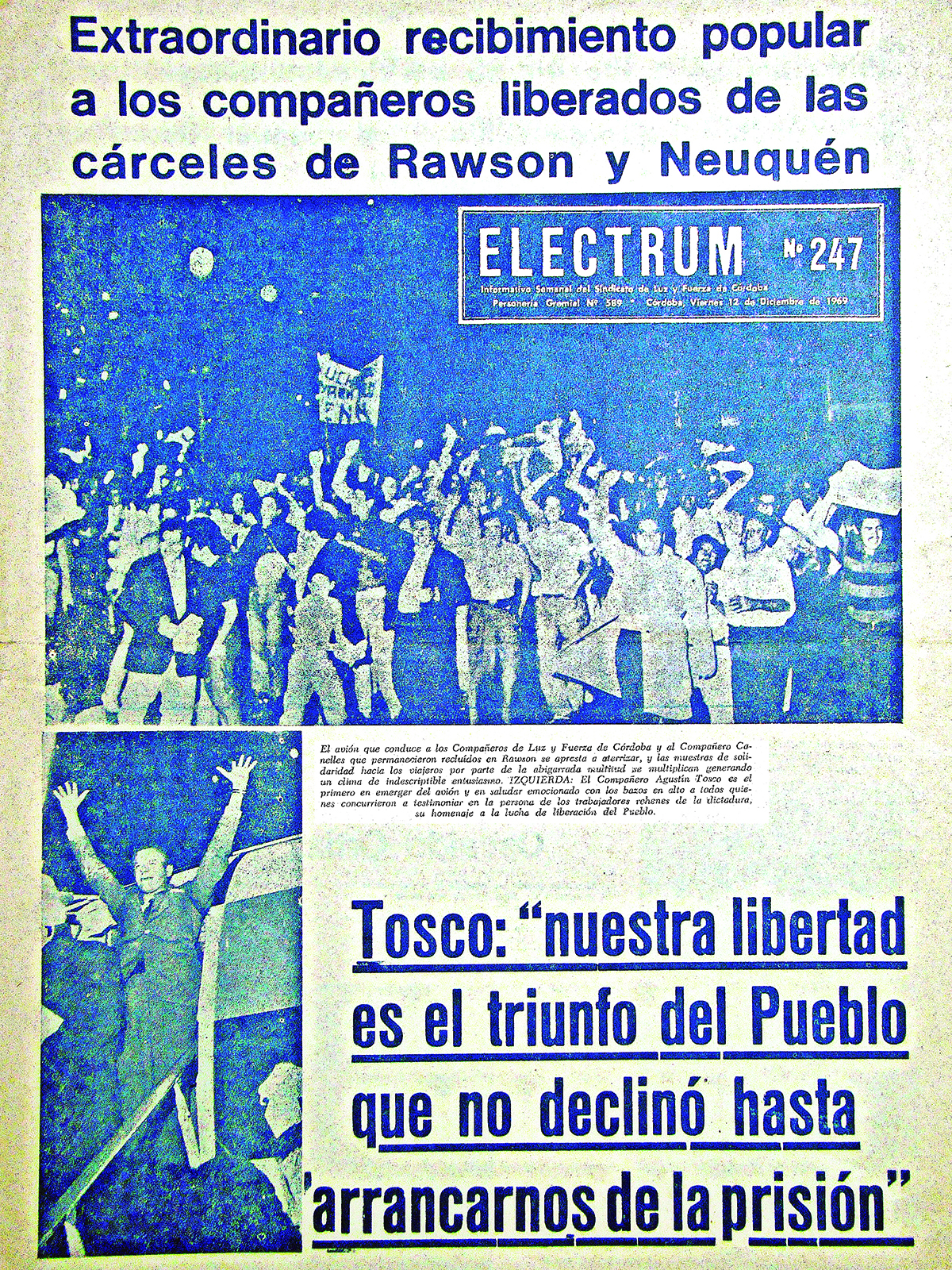 Es así que, en septiembre de 1953, apareció el primer número de Eléctrum impulsado y dirigido por Agustín Tosco. Destacaba su primer número: “…el primer acto es saludar y estrechar muy fraternalmente a todos los trabajadores argentinos y a todos los trabajadores de forman la humanidad (…) Eléctrum tiene trazado un recto camino y su campo es fértil. Es el símbolo máximo de la autenticidad de las conquistas sociales obtenidas por los trabajadores y será la clara expresión de su sentir”.