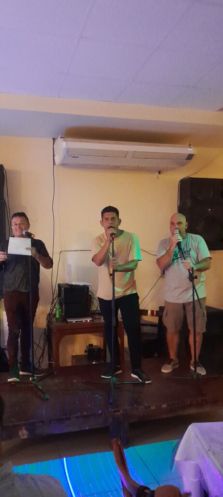 Párrafo aparte merece la “Noche de los Sábados” donde la cena está acompañada por música en vivo, baile y karaoke, donde el compañero Sub Secretario de Turismo y Cultura Leonardo Rojas “lo da todo” como se dice coloquialmente, primero pasando mesa por mesa para animar a los compañeros a participar, anotando a los valientes y luego, subiendo al escenario para “romper el hielo”. A medida que transcurre la velada, los presentes disfrutan del espectáculo, bailan, aplauden y se divierten en un entorno familiar y tranquilo.