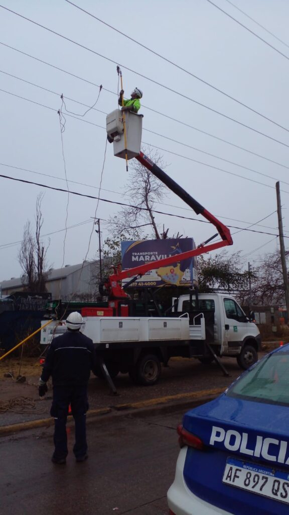 El viernes pasado, un camión de autopartes colisionó contra un poste de alumbrado público ubicado en Av. Gral. Savio al 5400, afectando a líneas de Media y Alta Tensión (MT – AT). Dado el riesgo eléctrico, acudieron compañeros de Guardia Este, de Mantenimiento de Líneas Aéreas Sur y de Redes de Alta Tensión, que de manera conjunta trabajaron bajo la lluvia para disipar el peligro, cumpliendo con todas las medidas de seguridad. En poco tiempo quedó restablecido el servicio.