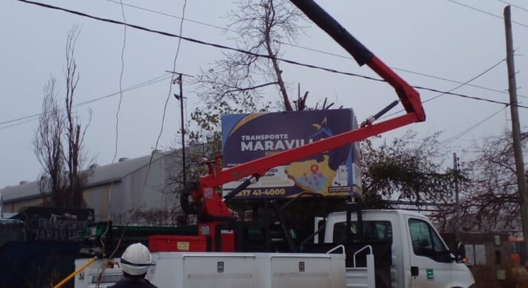El viernes pasado, un camión de autopartes colisionó contra un poste de alumbrado público ubicado en Av. Gral. Savio al 5400, afectando a líneas de Media y Alta Tensión (MT – AT). Dado el riesgo eléctrico, acudieron compañeros de Guardia Este, de Mantenimiento de Líneas Aéreas Sur y de Redes de Alta Tensión, que de manera conjunta trabajaron bajo la lluvia para disipar el peligro, cumpliendo con todas las medidas de seguridad. En poco tiempo quedó restablecido el servicio.
