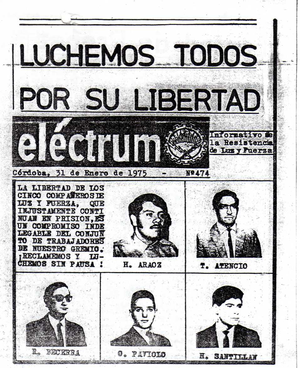 Pese a estar intervenido el sindicato y no tener suficientes recursos, Eléctrum se volvió a editar en diciembre del 74, con una editorial que concluía… “AQUÍ ESTAMOS para proclamar la verdad y la resistencia de los trabajadores de Luz y Fuerza de Córdoba”.