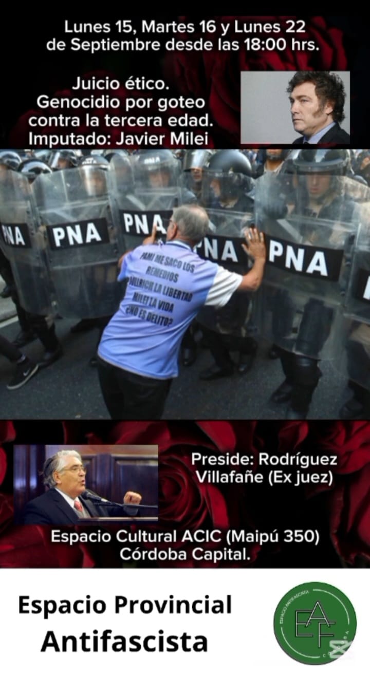 Desde “Espacio Provincial Antifascista”, se busca sacudir la conciencia moral del pueblo frente al avance libertario que pretende mantenernos adormecidos para cometer perversidades como el genocidio por goteo de jubilados y pensionados.