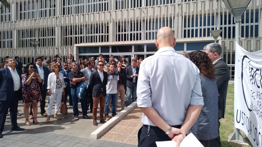 El martes a la mañana, abogados y abogadas laboralistas se manifestaron frente al polo judicial laboral, en Tribunales III, en defensa de los créditos laborales reclamados judicialmente por el trabajador (salarios, indemnización por despido, reparación por enfermedades o accidentes de trabajo), que están amparados por la Constitución en el artículo 14 bis y por tratados internacionales de derechos humanos con rango constitucional.