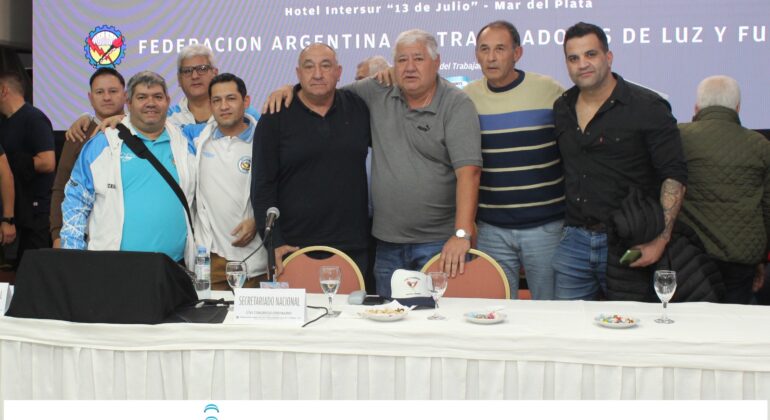 Nuestro sindicato participó del LXVI Congreso Ordinario de la Federación Argentina de Trabajadores de Luz y Fuerza, que se desarrolló del 25 al 27 de junio en el Hotel “13 de julio” de Mar del Plata, con la presencia de los 41 sindicatos afiliados. La delegación de nuestro Sindicato estuvo encabezada por nuestro Sec. Gral. Jorge Molina Herrera, que asistió junto a los compañeros Ezequiel Martínez, Germán Agüero, Juan Alaniz, Gustavo Vives, Claudio Pino, Marcos Pereyra y Héctor Pérez.