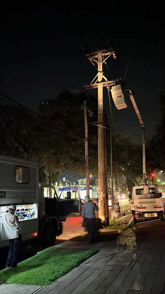 Diariamente los compañeros de las áreas operativas llevan adelante una intensa labor para el tendido, reparación y mantenimiento de las redes eléctricas. Es así que cuadrillas de Líneas Aéreas Norte acudieron ante reclamos por la falta de energía en diferentes puntos de la ciudad.