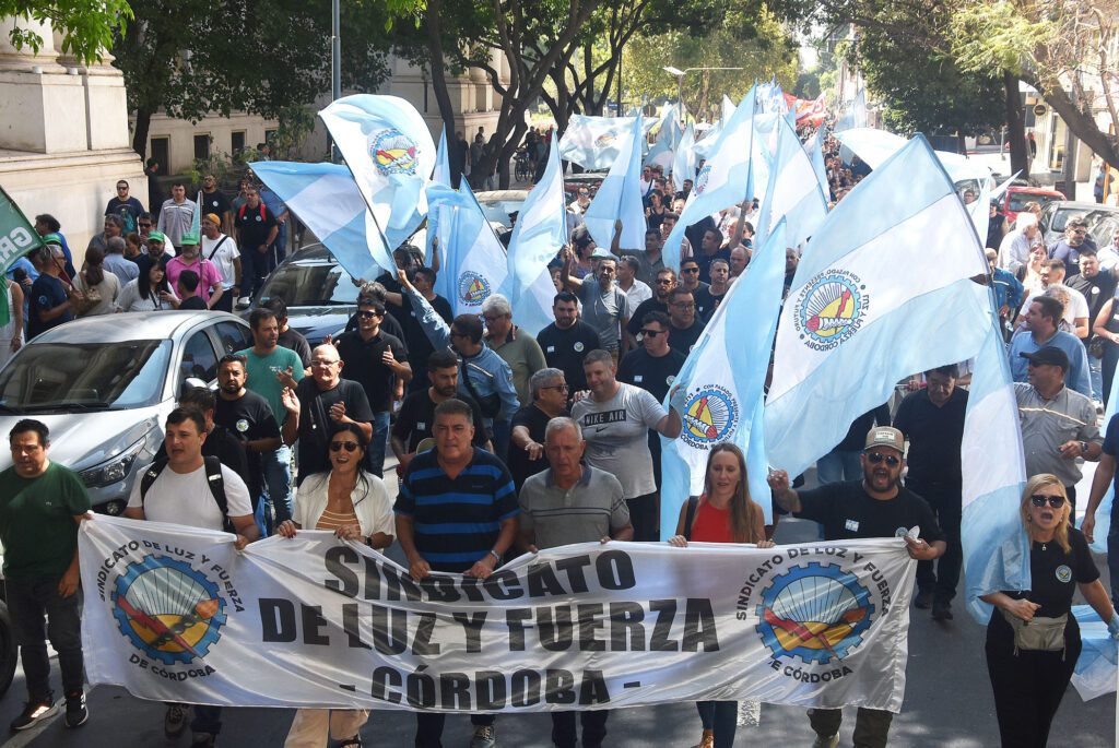 Con el folclore y entusiasmo que nos caracteriza, las y los compañeros fueron haciendo el abandono de sus sectores de trabajo como lo había dispuesto el Consejo Directivo, para dirigirse al punto de concentración en nuestra sede sindical, donde ya se encontraban otras organizaciones sindicales y políticas, que luego se sumaron a la nutrida columna para dirigirnos a Tribunales I, en donde habían citado a la Audiencia de Conciliación al Gobierno provincial, a las autoridades de la EPEC y a nuestro Sindicato, representado en la persona del compañero Secretario General Jorge Molina Herrera, que concurrió acompañado por nuestro asesor legal, Dr. Miguel Rodríguez Villafañe. Si bien es cierto que la sala Contencioso Administrativa está a escasos trescientos metros de nuestro sindicato, la voluntad de hacer oír nuestro rechazo a la S.A. por parte de los compañeros y compañeras, hizo que la columna no acuda directamente a Tribunales, y prolongó la caminata por las calles adyacentes a Tribunales con cánticos reafirmando nuestra posición, banderas en alto y mucho color.