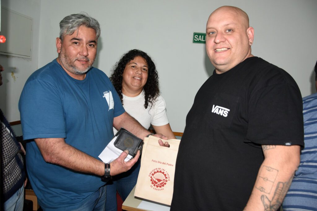 Finalizado el Cuerpo General de Delegados, la Secretaría de Actas invitó a los delegados y delegadas a acercarse a las oficinas de la Secretaría en el 4° piso de la sede sindical, donde se entregó un presente por el Día del Padre para los papás lucifuercistas, que, en esta oportunidad, es una billetera labrada con el escudo del gremio.