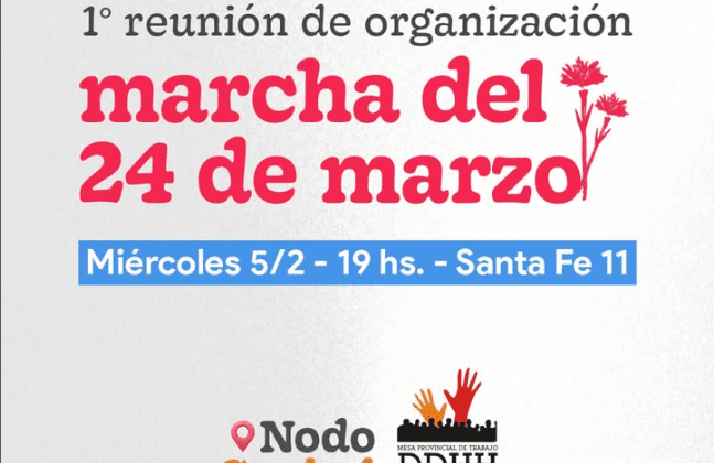 Te invitamos a sumarte a la 1° reunión de organización de la marcha del 24 de marzo del Nodo Capital de la Mesa de Trabajo por los DDHH de Córdoba