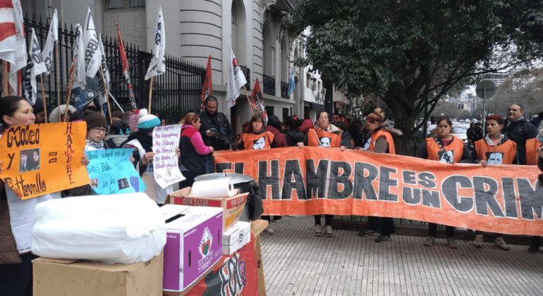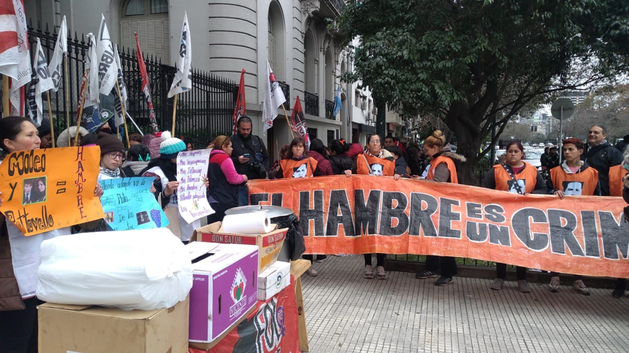 Con el lema “la peor violencia es el hambre”, organizaciones que integran el espacio Territorios en Lucha se concentraron desde las 11 en Juncal y Carlos Pellegrini, con la intención de ser recibidas por la cartera que conduce Pettovello.