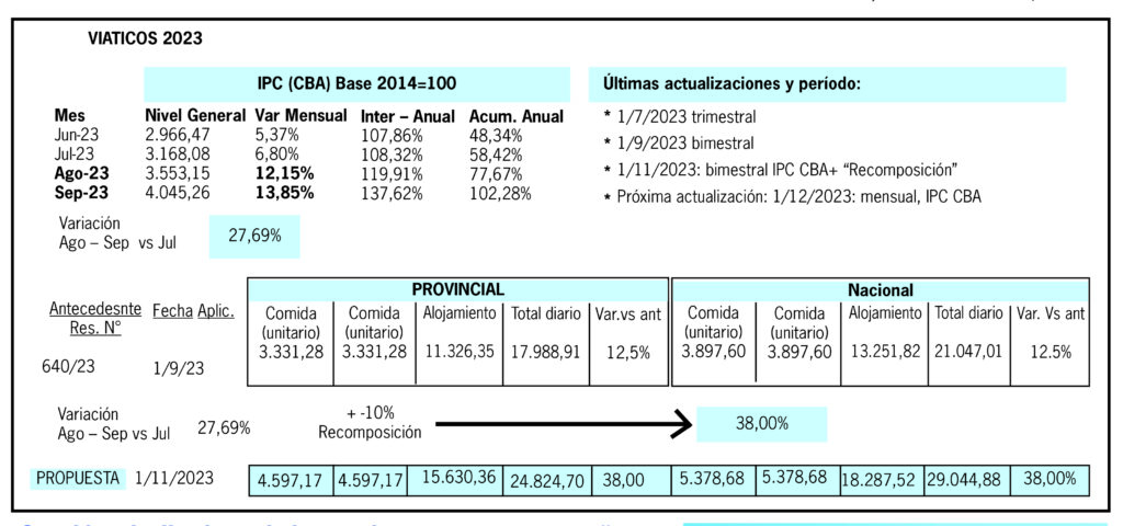En virtud del tiempo transcurrido y la conformación de este déficit, logramos que al 27% de atraso se sume un 10% para establecer una recomposición del valor del viático en un 38%. Esta actualización, una vez emitida la resolución del directorio, tendrá vigencia a partir del 1 de noviembre.